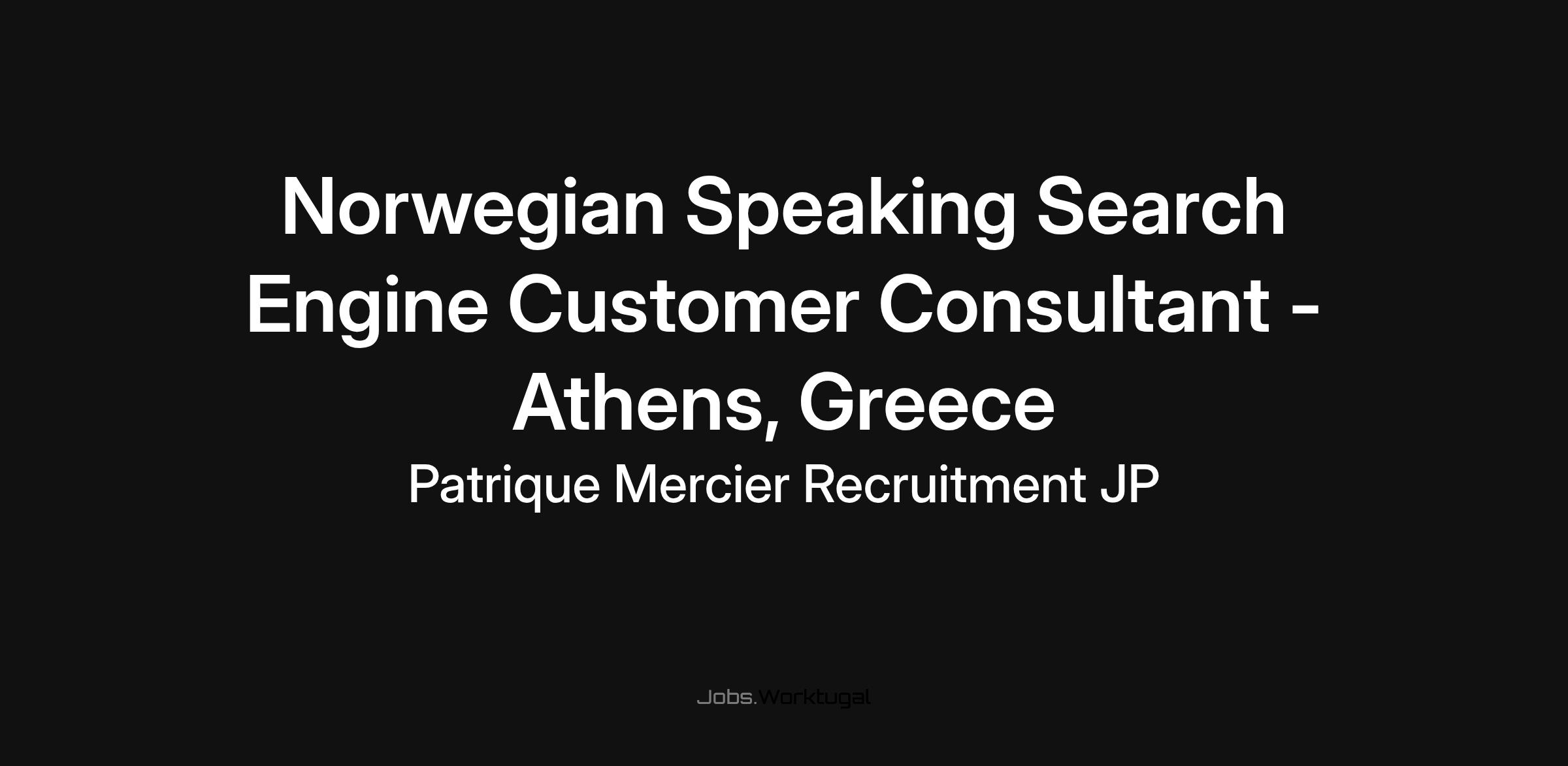 Patrique Mercier Recruitment JP is excited to announce an opening for a Norwegian Speaking Search Engine Customer Consultant based in the vibrant city of Athens, Greece!
