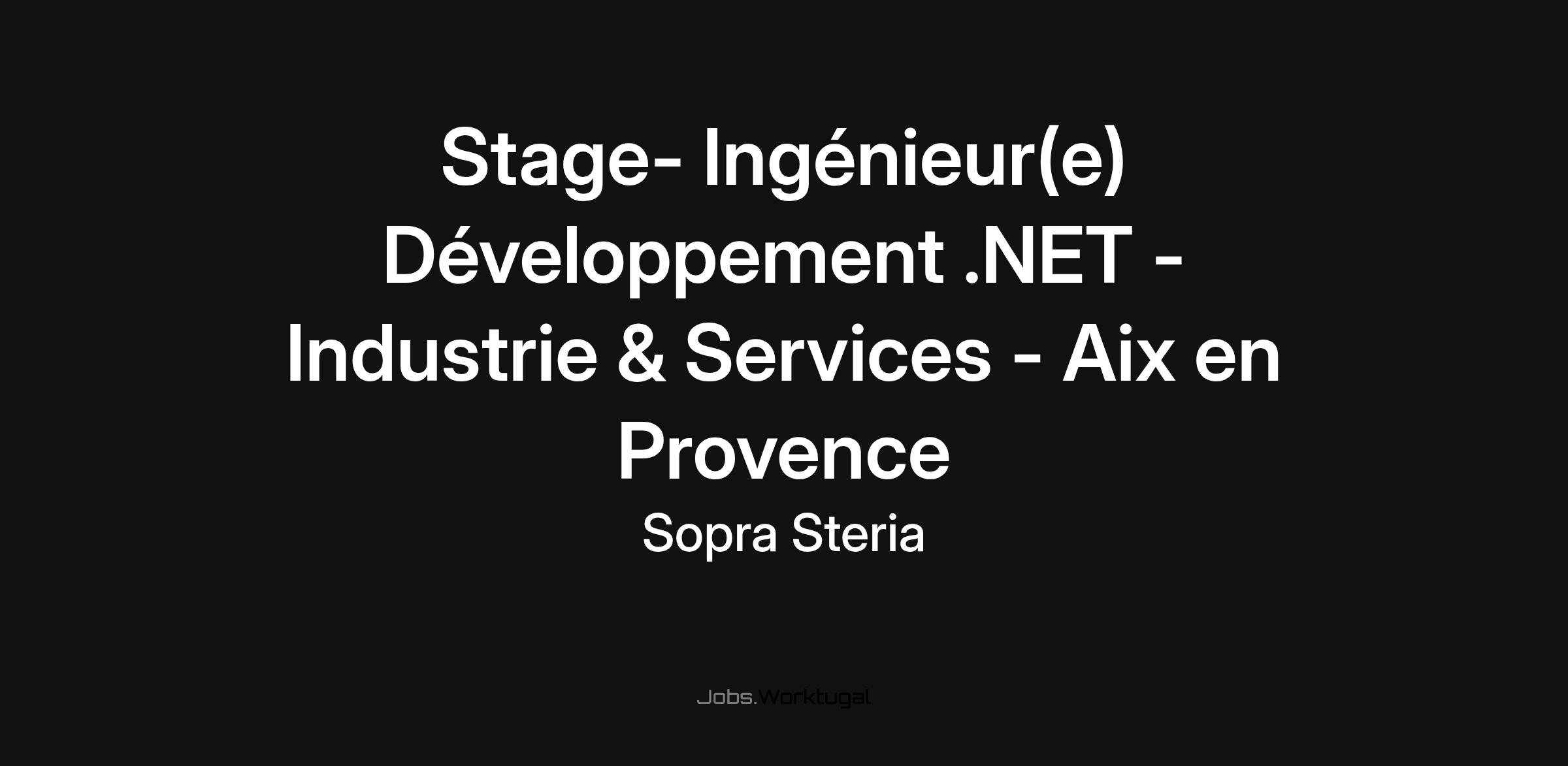 Stage - Ingénieur(e) Développement .NET - Industrie & Services – Aix en Provence